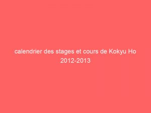 Saison 2013-2014 Kokyu Ho ouvre son dojo, nous ouvrons des cours les mercredis de 18h à 19h30 et les vendredis de 20h à 22h au…