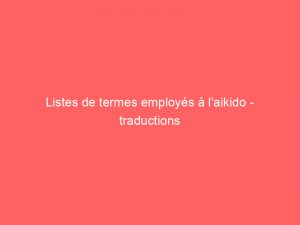 Voici une petite liste de termes, parce que comprendre le sens du vocabulaire peut aider à comprendre une technique. Termes de déplacements TAI-SABAKI : littéralement déplacement…